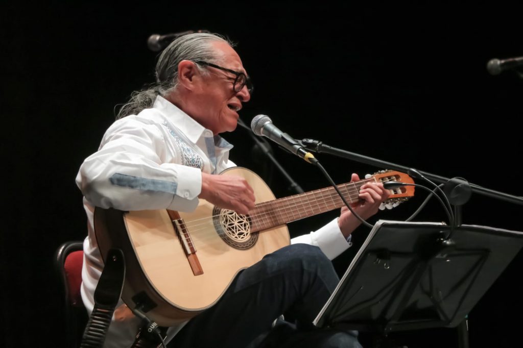 También habló sobre la violencia contra las mujeres y ofreció su canto contracorriente a los “fifís” y los “chapulines”. Reflexionó sobre la patria y recordó emotivo al recientemente fallecido y también fundador del llamado Canto Nuevo, Oscar Chávez.