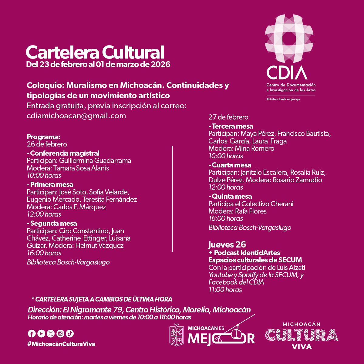 Entrada gratuita, previa inscripción al correo: cdiamichoacan@gmail.com