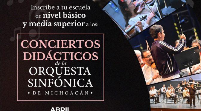 Morelia, Michoacán, 23 de febrero de 2026.- La Secretaría de Cultura de Michoacán (Secum) invita a instituciones educativas de nivel básico y medio superior a participar en los conciertos didácticos de la Primera Temporada 2026 de la Orquesta Sinfónica de Michoacán (Osidem), una propuesta formativa que acerca a niñas, niños y adolescentes a la experiencia […]