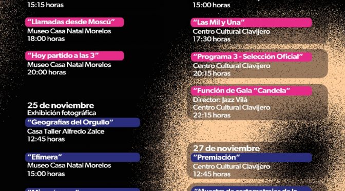 Del 24 al 27 de noviembre en el Centro Cultural Clavijero, El Museo Casa Natal de Morelos y la Casa Taller Alfredo Zalce. Morelia, Michoacán, 22 de noviembre de 2023.- El Centro Cultural Clavijero, El Museo Casa Natal de Morelos y la Casa Taller Alfredo Zalce, de la Secretaría de Cultura de Michoacán, serán las […]