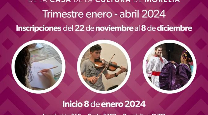 Del 22 de noviembre al 8 de diciembre. Con 2 talleres de folclor para personas con síndrome de down. Morelia, Michoacán, 21 de noviembre 2023.- Este miércoles 22 de noviembre, comienzas las inscripciones en la Casa de la Cultura de Morelia, correspondientes al primer trimestre del año 2024, en el que se ofertarán 150 talleres […]