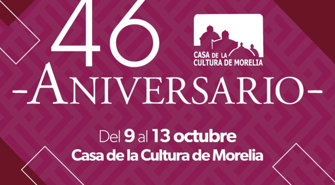 Del 9 al 13 de octubre Morelia, Michoacán, 8 de octubre de 2023.- La Secretaría de Cultura de Michoacán (Secum) continúa con los festejos de la Casa de la Cultura de Morelia por su 46 Aniversario, por lo que invita al público en general a las actividades que se desarrollarán del 9 al 13 de […]