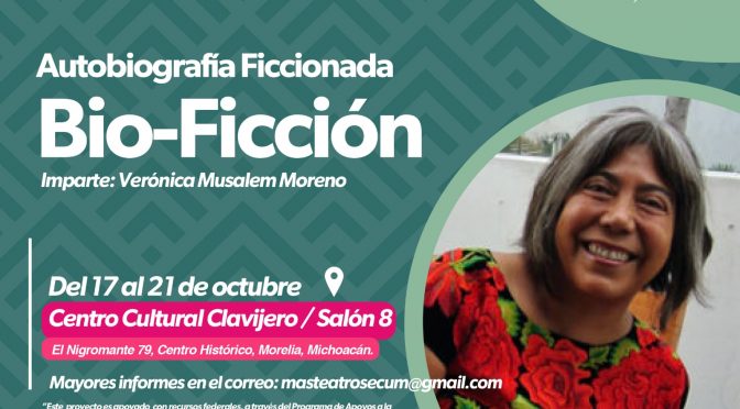 • Será impartido por Verónica Musalem, del 17 al 21 de octubre en el Centro Cultural Clavijero Morelia, Michoacán, 13 de octubre del 2022.- Dirigido a estudiantes, actores, dramaturgos, poetas, narradores, cuentistas y artistas plásticos que estén interesados en explorar la autobiografía como un modo de expresión artística, el Departamento de Teatro, de la Secretaría […]
