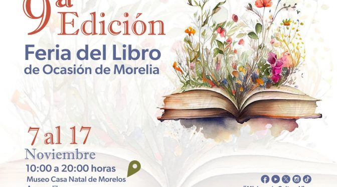 Morelia, Michoacán, 7 de noviembre de 2025.- La Secretaría de Cultura de Michoacán (Secum) invita al público a disfrutar de la novena edición de la Feria del Libro de Ocasión de Morelia, que se llevará a cabo del 7 al 17 de noviembre en el Museo Casa Natal de Morelos, de 10:00 a 20:00 horas, […]