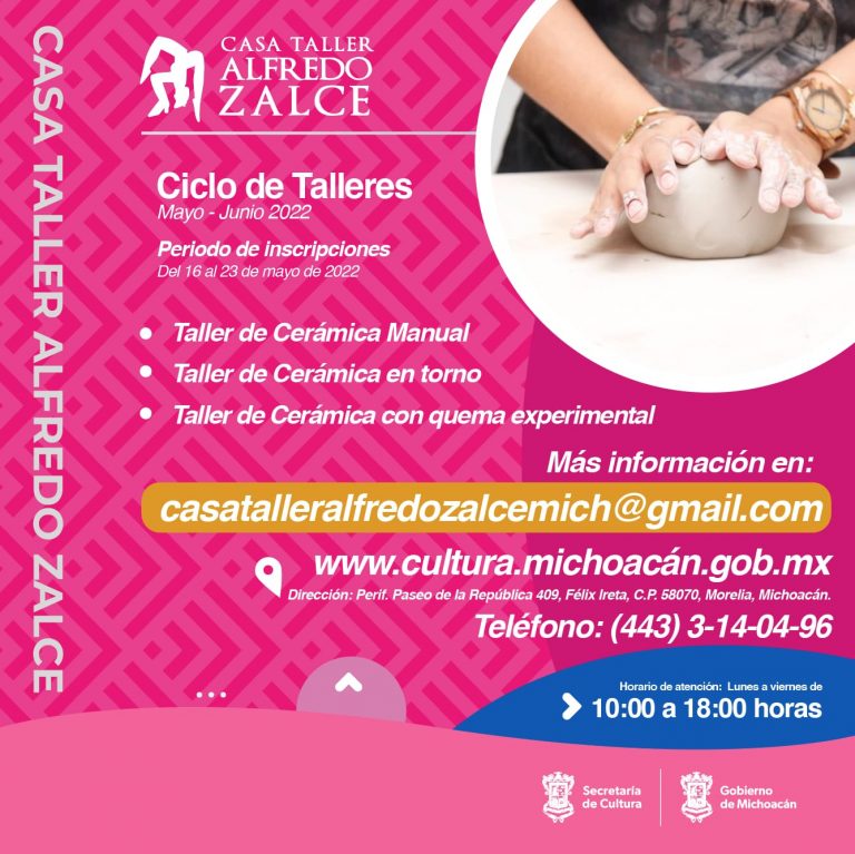 • Las inscripciones se encuentran abiertas y cierran el 23 de mayo Morelia, Michoacán, 16 de mayo de 2022.- La Secretaría de Cultura de Michoacán (SECUM) invita a la ciudadanía a participar en los talleres de cerámica, que se realizarán en la Casa-Taller Alfredo Zalce, a partir del 23 de mayo, con atención para principiantes […]