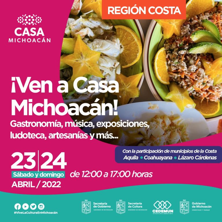 •La riqueza cultural, gastronómica y agrícola de Coahuayana se hará presente por partida doble: este fin de semana en Casa Michoacán, junto con Aquila y Lázaro Cárdenas; y del 1 al 10 de mayo, en la Feria del Plátano Morelia, Michoacán, 22 de abril de 2022.- Casa Michoacán promociona las tradiciones, la música, la gastronomía […]