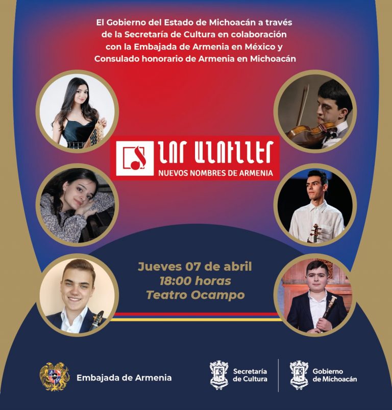 • Los músicos han conquistado América Latina, Europa y Medio Oriente Morelia, Michoacán, 4 de abril del 2022.- El Gobierno de Michoacán, a través de la Secretaría de Cultura (SECUM), en colaboración con la Embajada de Armenia en México y el Consulado Honorario de Armenia en la entidad, presentará el concierto Nuevos Nombres de Armenia, […]