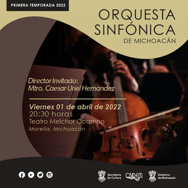 • El concierto será conducido por Caesar Uriel Hernández, quien dirigirá tres sinfonías de Joseph Haydn Morelia, Michoacán, 27 de marzo del 2022.- Dentro de su temporada 2022, la Orquesta Sinfónica de Michoacán (OSIDEM) ofrecerá un concierto que incluye tres sinfonías del compositor austriaco Franz Joseph Haydn. Se realizará el próximo 1 de abril a […]