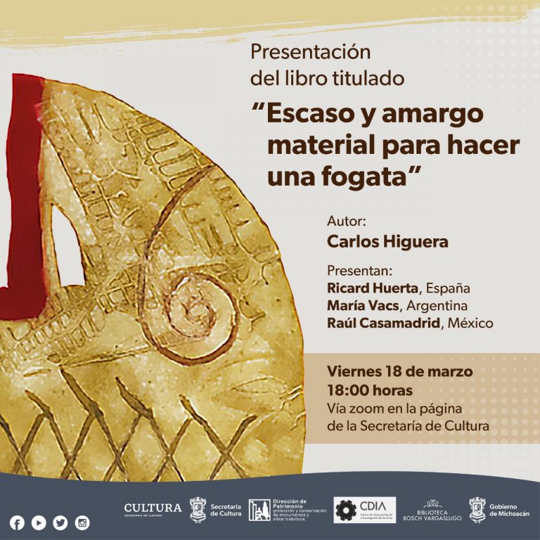 •Carlos Higuera, autor de “Escaso y amargo material para hacer una fogata”, es poeta, ensayista, traductor y docente mexicano Morelia, Michoacán, 14 de marzo de 2022.- Amantes de la literatura de España, Argentina y México, participarán en la presentación virtual del libro “Escaso y amargo material para hacer una fogata”, del escritor mexicano Carlos Higuera, […]