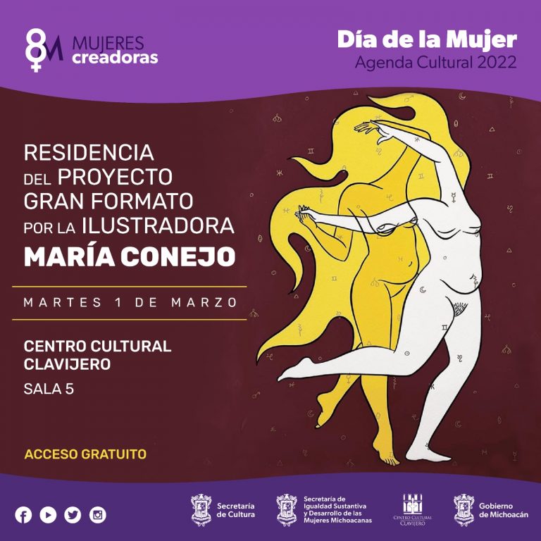 •María Conejo es una artista visual que ha ilustrado textos relacionados con el feminismo, los cuerpos, la educación y la diversidad sexual, la historia y la representación de las mujeres Morelia, Michoacán, 02 de marzo del 2022.- La Residencia de producción de la obra de Gran Formato “Cuerpos en libertad y conciencia”, de la artista […]