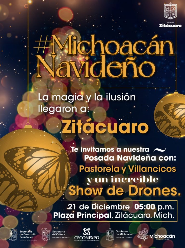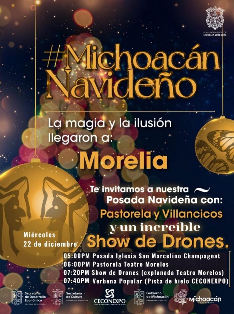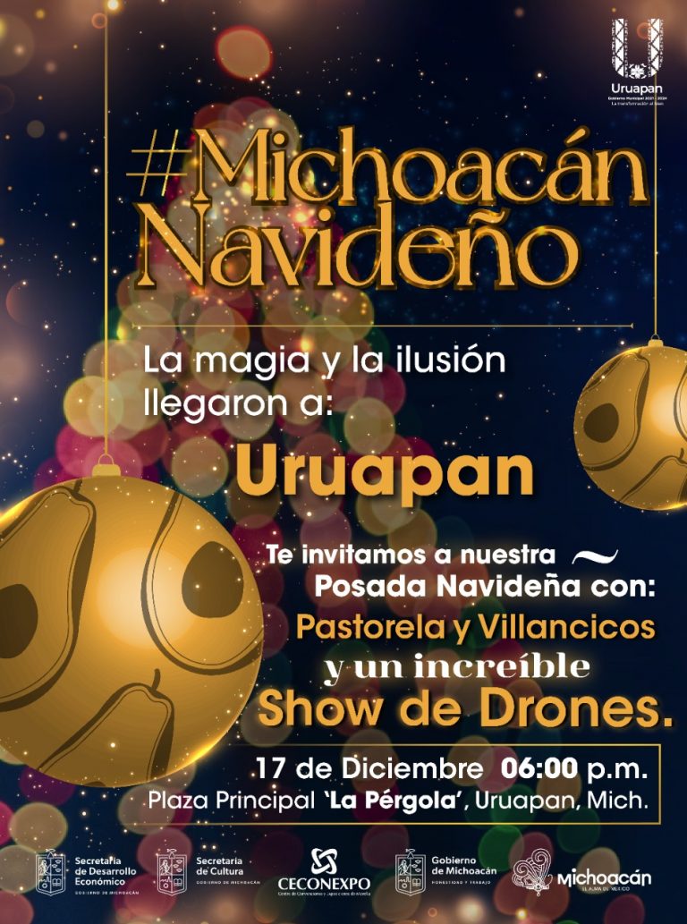 Con una posada tradicional, una pastorela, show de drones, el encendido de un árbol navideño y un espectáculo de luces, Uruapan se suma a “Michoacán Navideño” El Gobierno de Michoacán a través de un trabajo coordinado entre la SECUM, SECTUR Y CECONEXPO, realizan el programa “Michoacán Navideño”, que el día de hoy se presenta en […]