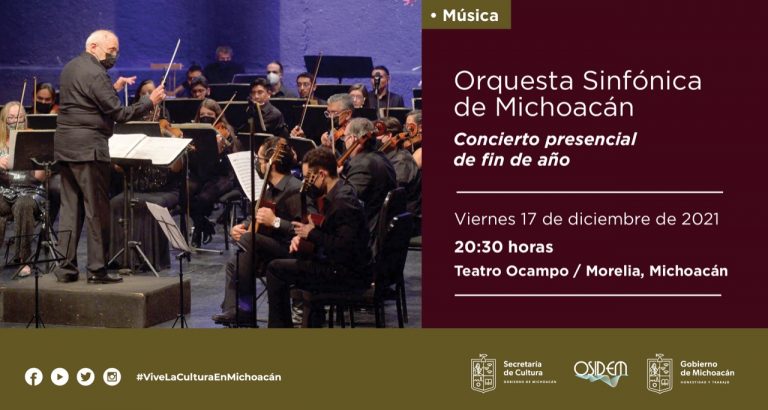 Morelia, Michoacán, a 11 de diciembre del 2021.- El Teatro Ocampo se llenará de música con la Orquesta Sinfónica de Michoacán (OSIDEM), que cerrará su temporada de conciertos 2021, el próximo viernes 17 de diciembre, a las 20:30 horas, de forma presencial y con el aforo reglamentario. Bajo la dirección de Román Revueltas Retes, la […]