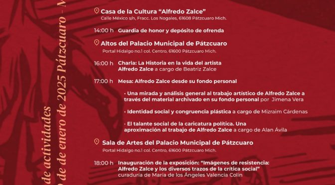 En el marco del 22 aniversario luctuoso del destacado artista michoacano Morelia, Michoacán, 16 de enero de 2025.- La Secretaría de Cultura de Michoacán (Secum) presentará la exposición, Imágenes de Resistencia: Alfredo Zalce y los diversos trazos de la crítica social, en homenaje a su 22 aniversario. La muestra se inaugurará el 17 de enero […]