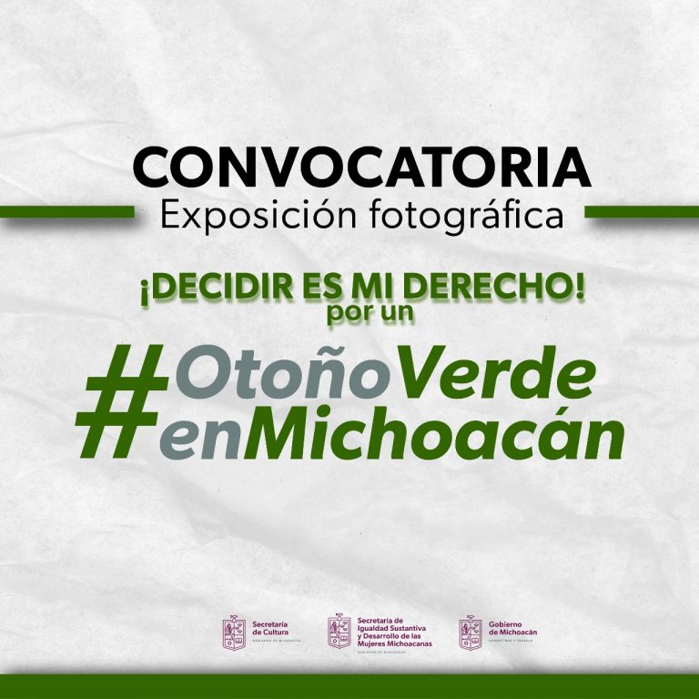 El Gobierno del Estado de Michoacán, a través de la Secretaría de Igualdad Sustantiva y Desarrollo de las Mujeres Michoacanas y la Secretaría de Cultura del Estado, te invitan a que formes parte de la exposición fotográfica “Decidir es mi derecho, por un #OtoñoVerde en Michoacán”. Con el propósito de dar difusión y visibilidad a […]