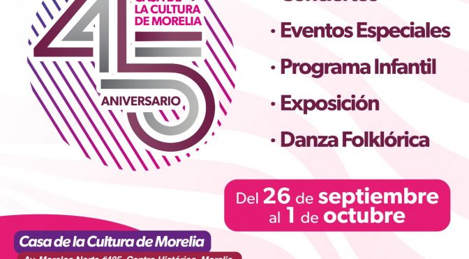 “45 años de enseñanza en las artes para el pueblo” DÍA 1 Lunes 26 de septiembre A partir 19:00 horas INAUGURACIÓN ACTO PROTOCOLARIO – 19:00 HORAS: *Palabras de la Secretaria de Cultura*Entrega de reconocimientos al personal con trayectoria, alumnos con más de 3 años de inscripción (algunas disciplinas) y exalumnos que continuaron profesionalmente en el […]