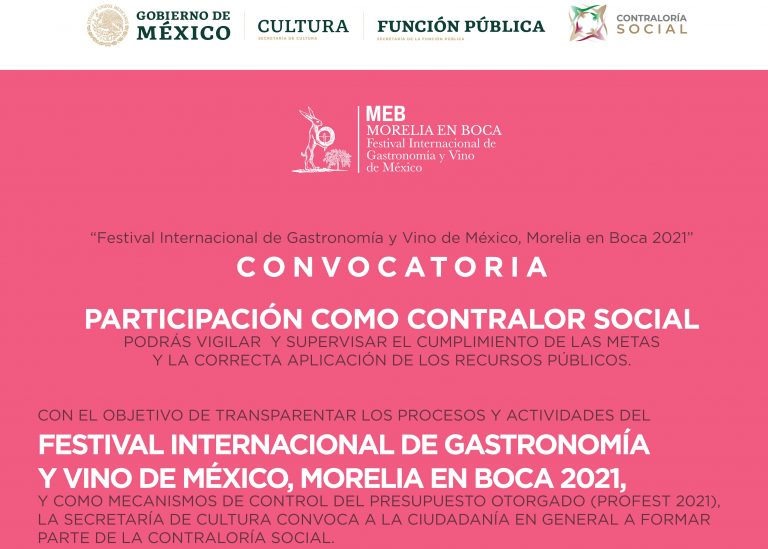 La Secretaría de Cultura te invita a participar en el Comité de Contraloría Social del Proyecto: Festival Internacional de Gastronomía y Vino, MORELIA EN BOCA 2021. Materiales de difusión