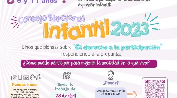 Se recibirán dibujos, pinturas, fotografías, poesías, cuentos, esculturas, canciones, videos y tik toks. Morelia, Michoacán, 17 de mayo de 2023.- La Secretaría de Cultura estatal (Secum) convoca a participar en el concurso de expresión infantil Nuestro arte, nuestros derechos, para conformar el Consejo Electoral Infantil 2023, que encabeza el Instituto Electoral de Michoacán (IEM). Dirigido […]