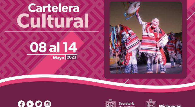 Descargas: Secretaría de Cultura del Estado de Michoacán (SECUM) Cartelera Cultural del 8 al 14 de mayo de 2023 LUNES 8 Festival del Libro de Zamora Eventos artísticos y culturales, presentaciones y venta de libros, talleres Del 05 al 14 de mayo De 10:00 a 18:00 horas Plaza Pública / Zamora MARTES 9 Cine Club […]