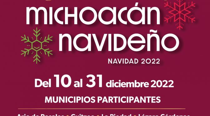 Secretaría de Cultura del Estado de Michoacán (SECUM) Cartelera Cultural del 19 al 25 de diciembre de 2022 LUNES 19 Evento especial Michoacán Navideño 2022 Pastorela: El sueño de Bartolito y la estrella Compañía: Vaso Teatro Director: Manuel Barragán 19:00 horas / Acceso gratuito Teatro del Pueblo / LA PIEDAD MARTES 20 Artes escénicas Danza […]