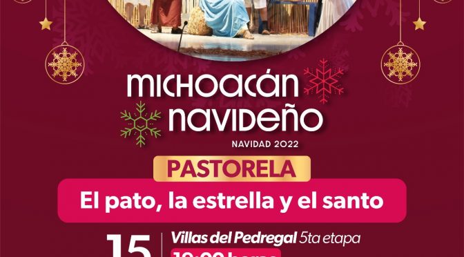 • Este 15 de diciembre, se presentará la pastorela “El pato, la estrella y el santo”, a las 19:00 horas Morelia, Michoacán, 13 de diciembre del 2022.- La Secretaría de Cultura de Michoacán (Secum) coordina el programa “Michoacán Navideño” que este miércoles, 15 de diciembre, llegará a Villas del Pedregal, en la capital michoacana, a […]