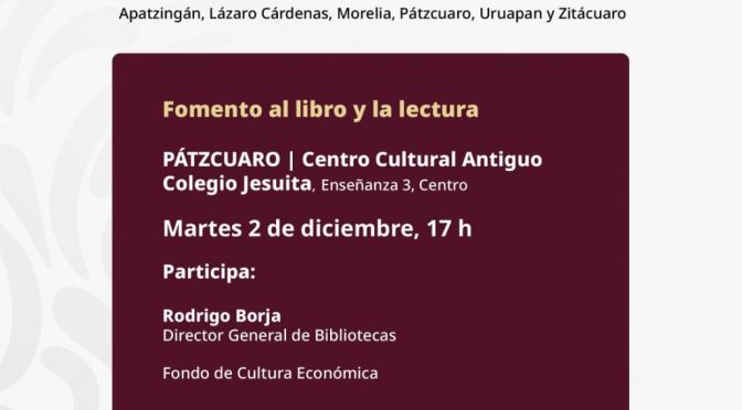Morelia, Michoacán, 2 de diciembre de 2025.- La Secretaría de Cultura de Michoacán (Secum) invita a creadoras, creadores, colectivos y actores culturales del estado a participar en las mesas del Encuentro “Comunidades Artísticas, Patrimonio y Memoria”, que lleva a cabo el Gobierno de México desde el 27 de noviembre hasta el 4 de diciembre, como […]