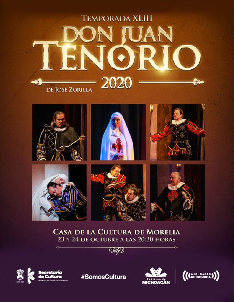 • Tendrá aforo reducido y se seguirán todos los protocolos que marcan las instituciones sanitarias Morelia, Michoacán, a 16 de octubre de 2020.- Artemática Producciones presentará la XLIII Temporada de “Don Juan Tenorio”, de José Zorrilla, del 23 al 25 de octubre a las 8:30 de la noche, en el Patio principal de la Casa de […]