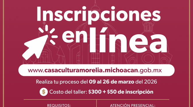 Ciclo de talleres artísticos y culturales de la casa de la Cultura de Morelia del periodo del 12 de enero a 28 de marzo de 2026, con inscripciones del 02 al 16 de diciembre de 2025, en el cual se abordarán disciplinas como: Artes plásticas, danza, teatro, literatura y música, entre otras. ARTES PLÁSTICAS TALLER […]