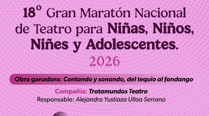 La Secretaría de Cultura de Michoacán, la Dirección de Promoción y Fomento Cultural y su Departamento de Teatro, dan a conocer el resultado de la convocatoria del 18° Gran Maratón Nacional de Teatro para niñas, niños, niñes y adolescentes. Tras una revisión detallada de las propuestas recibidas, se determinó a la obra seleccionada basándose en […]
