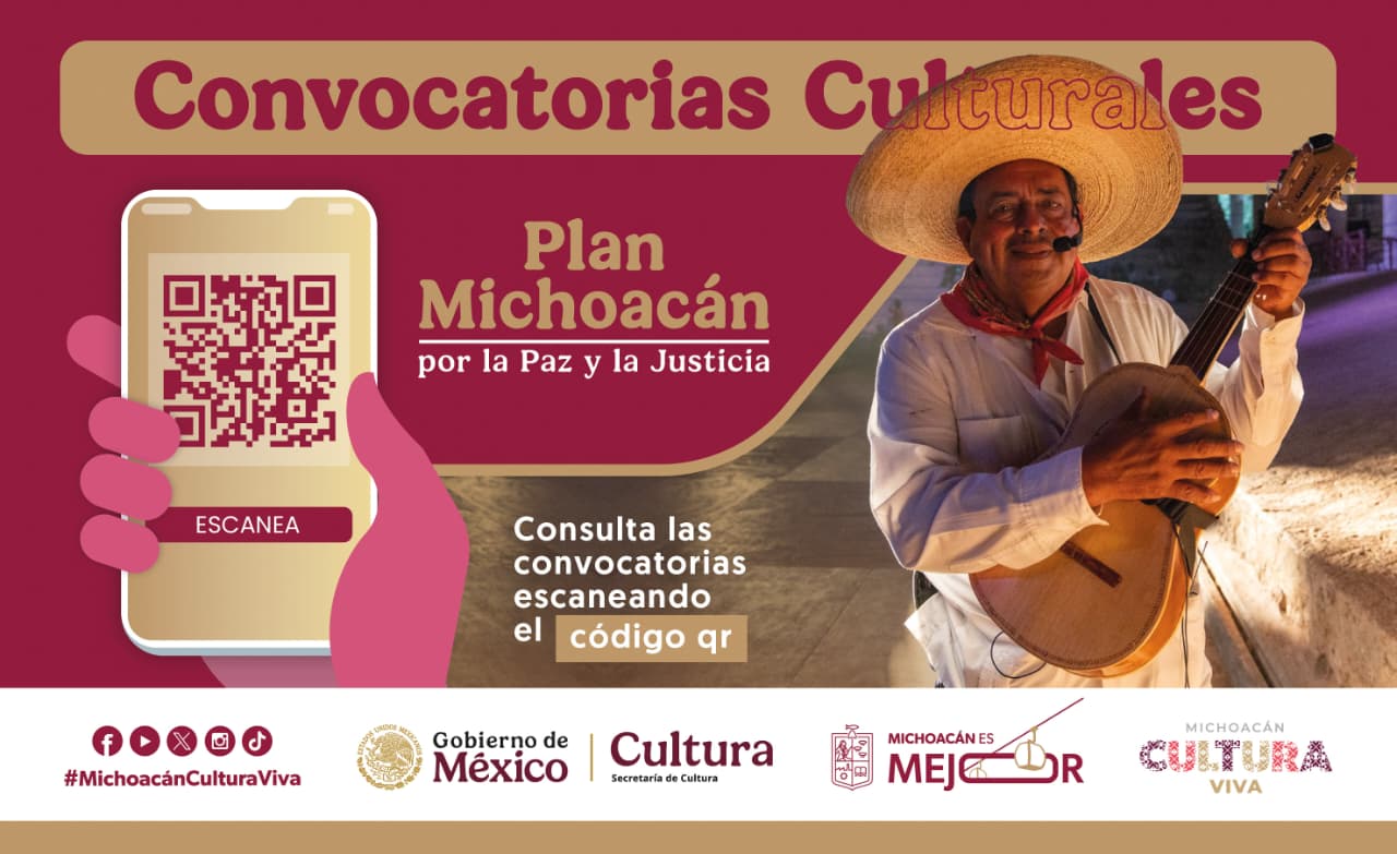 Morelia, Michoacán, 23 de enero del 2026.- En el marco del Plan Michoacán por la Paz y la Justicia, la Secretaría de Cultura de Michoacán (Secum) convoca a creadores, gestores, colectivos y comunidades culturales del estado a participar en las convocatorias federales vigentes impulsadas por la Secretaría de Cultura federal, las cuales priorizan proyectos con impacto comunitario, territorial y social.