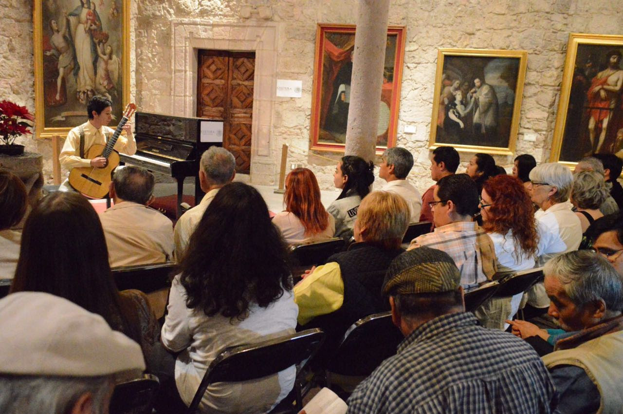 Morelia, Michoacán, a 3 de marzo de 2017.- Dentro de los Jueves de Coloquio que se realizan en el Museo de Arte Colonial, se efectuó el concierto de guitarra con Cutberto Cibrián, así como por parte de distintos jóvenes talentos como Luis Enrique González Martínez, Luis Fernando Bárcenas, José Alfredo Cortez, Manuel Rodríguez Jiménez y Fernando Antonio Agundez Chinchillas. La actividad fue de entrada totalmente gratuita a todo interesado.