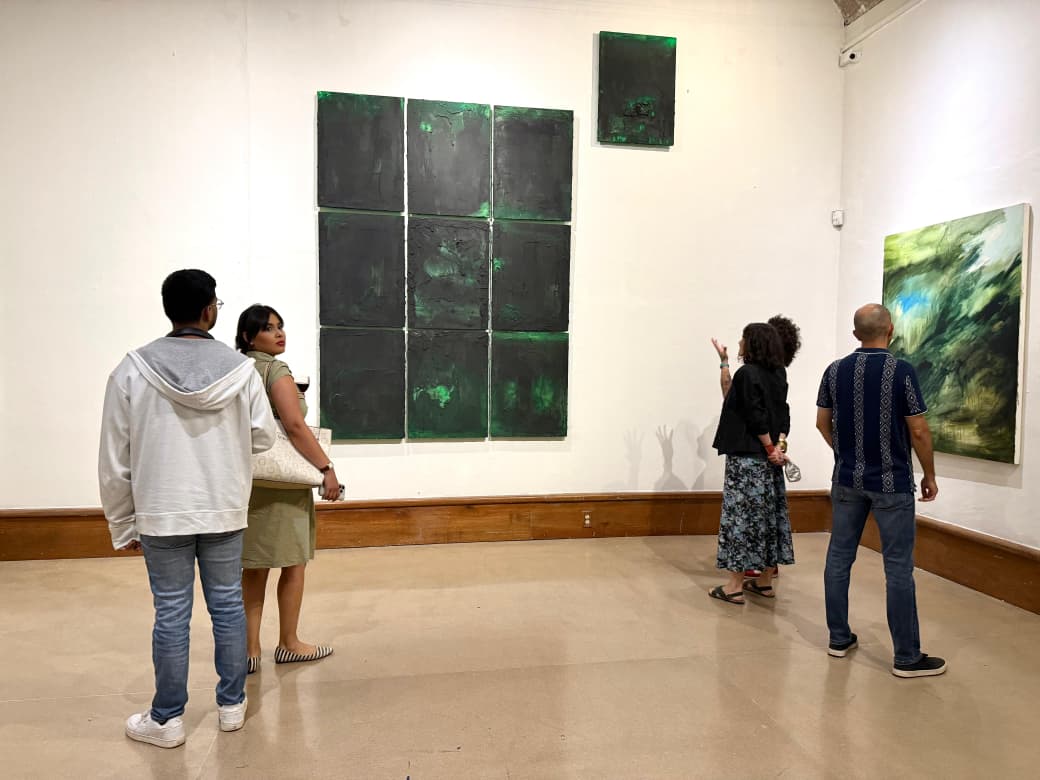 Por otro lado, la Sala 2 alberga “Noomateria”, de Roberto Carrillo, propuesta derivada de una investigación pictórica vinculada con la ciencia ficción, particularmente con la novela “Solaris”, a partir de la cual imagina una materia sensible capaz de pensar, responder y generar imágenes. El artista destacó el carácter profundamente personal de la muestra, dedicada a su padre y a su familia, e invitó al público a relacionarse con la obra desde la percepción y la experiencia directa.