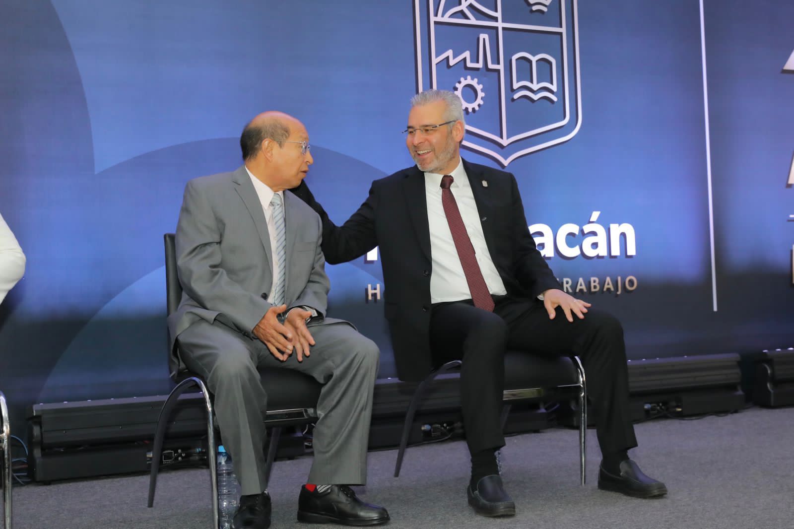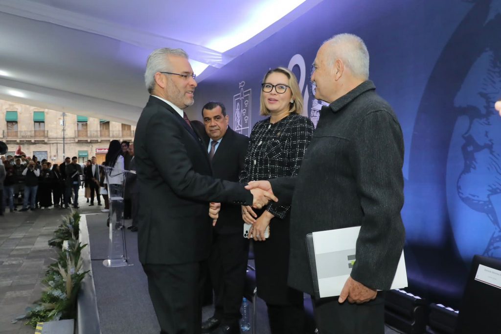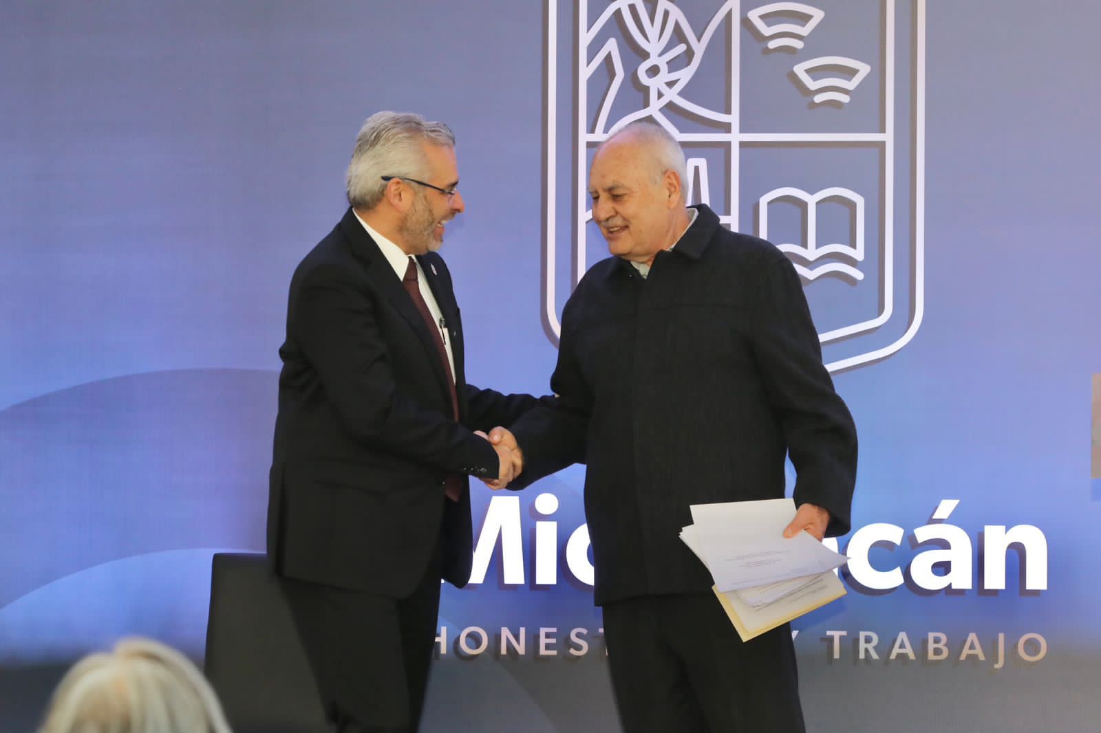 Participaron en el acto el secretario de Gobierno, Elías Ibarra Torres; la diputada presidenta de la comisión de Cultura y Artes del Congreso local, Andrea Villanueva Cano; el magistrado presidente del Supremo Tribunal de Justicia del Estado, Jorge Reséndiz García; la rectora de la Universidad Michoacán de San Nicolás Hidalgo, Yarabí Ávila González; y el comandante de la XXI Zona Militar, Fernando Colchado Gómez; así como autoridades municipales.