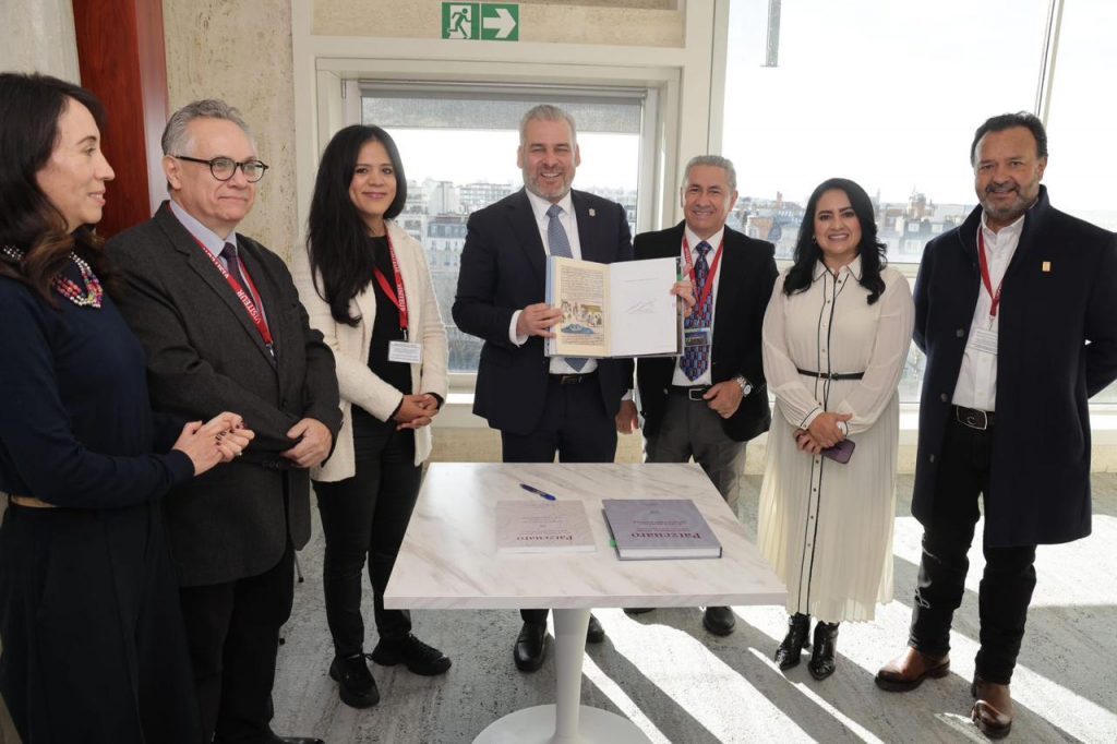 París, Francia, 27 de enero de 2025.- El gobernador Alfredo Ramírez Bedolla entregó a la Organización de las Naciones Unidas para la Educación, la Ciencia y la Cultura (Unesco) el expediente para que Pátzcuaro obtenga el reconocimiento de Patrimonio Mundial en la categoría de Sitio de Memoria Histórica.