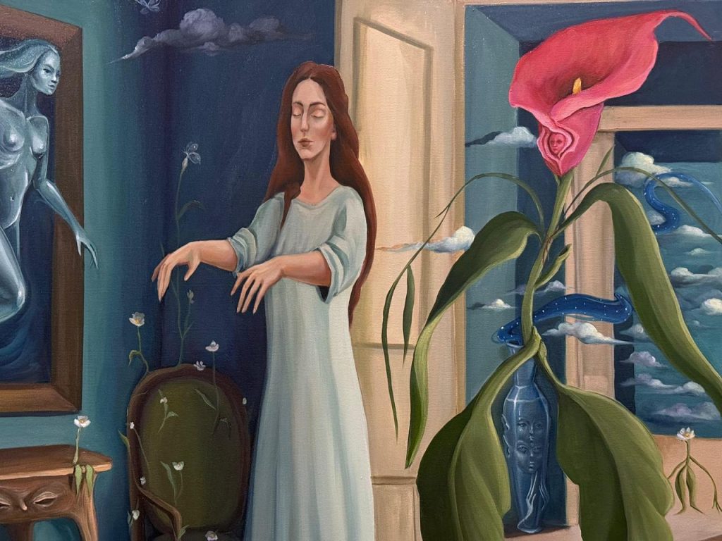 En “Adentro: habitando lo invisible”, Pavia retoma y amplía su universo íntimo con un nuevo mural, pinturas y esculturas que materializan los personajes de su propia mitología: mujeres flor, habitaciones utópicas, nubes y universos domésticos donde lo invisible cobra cuerpo y significado.