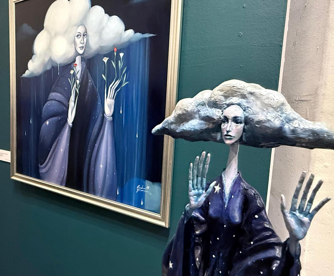 En “Adentro: habitando lo invisible”, Pavia retoma y amplía su universo íntimo con un nuevo mural, pinturas y esculturas que materializan los personajes de su propia mitología: mujeres flor, habitaciones utópicas, nubes y universos domésticos donde lo invisible cobra cuerpo y significado.
