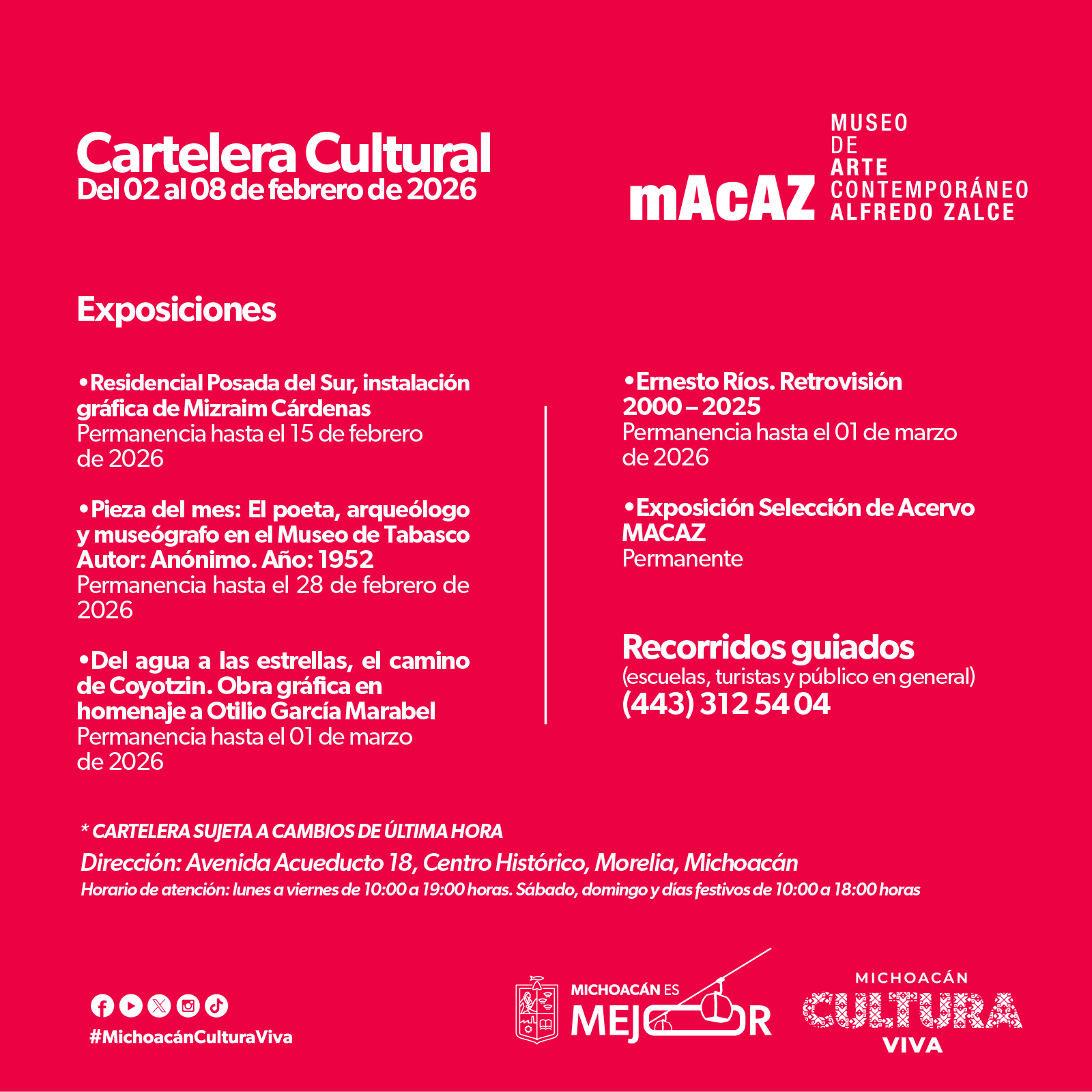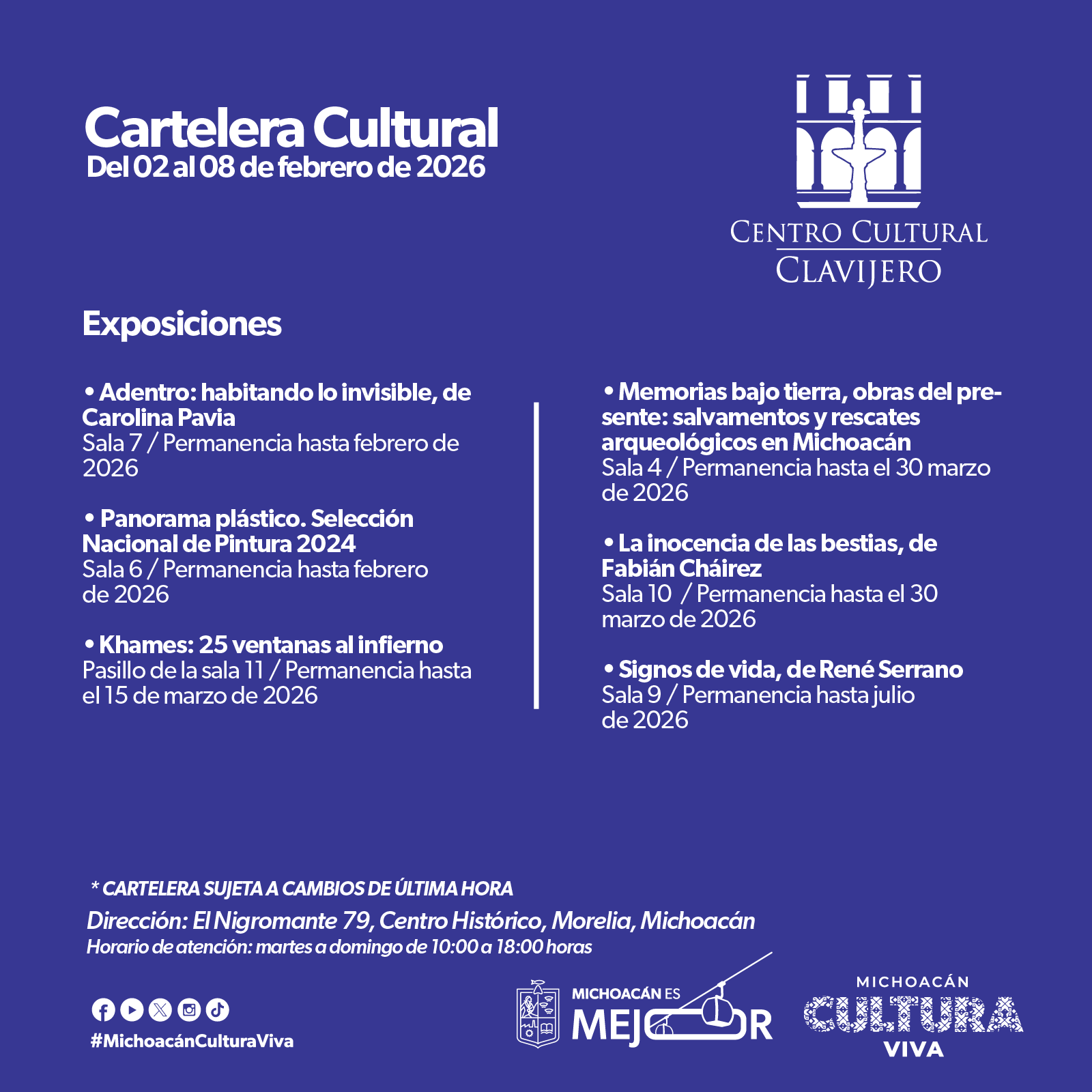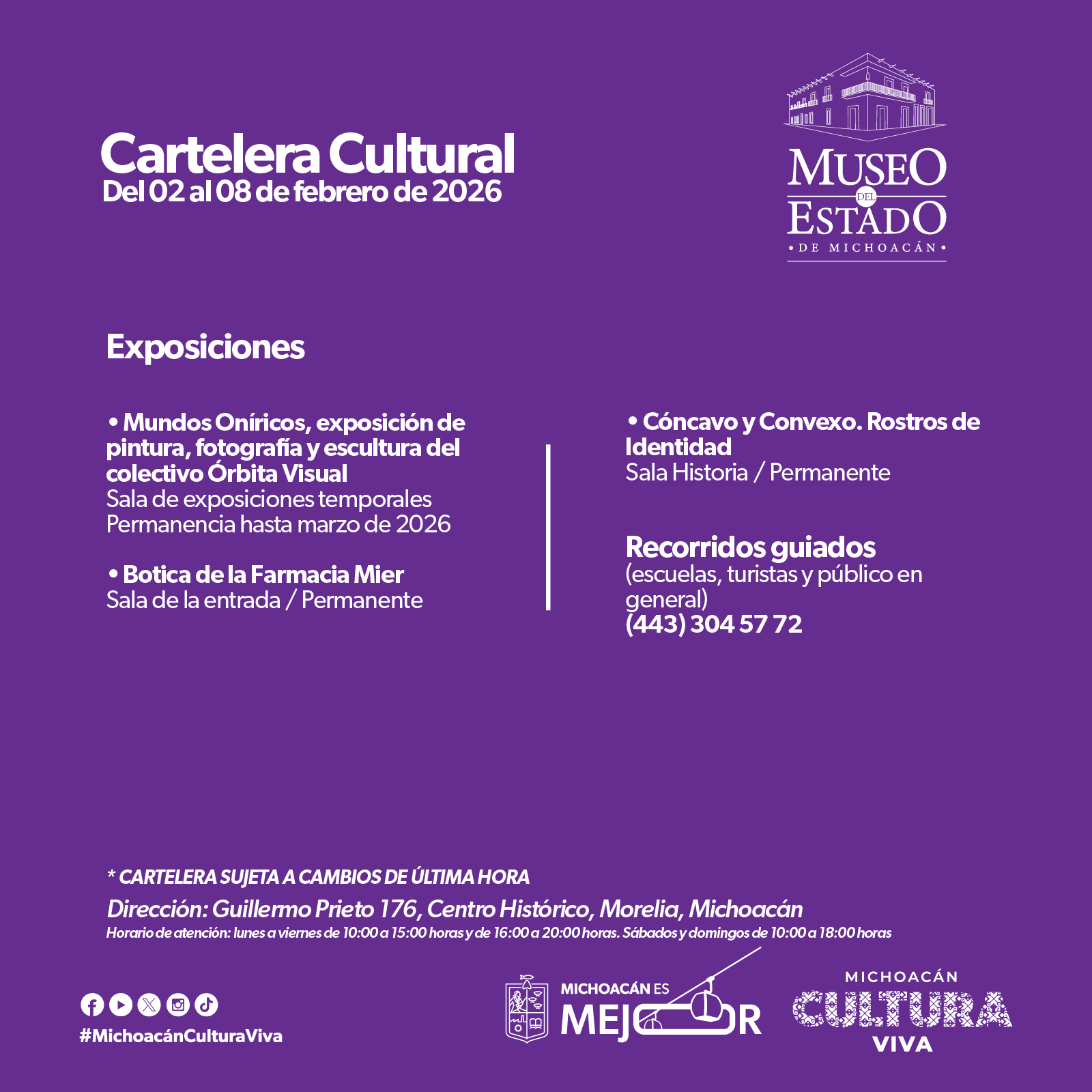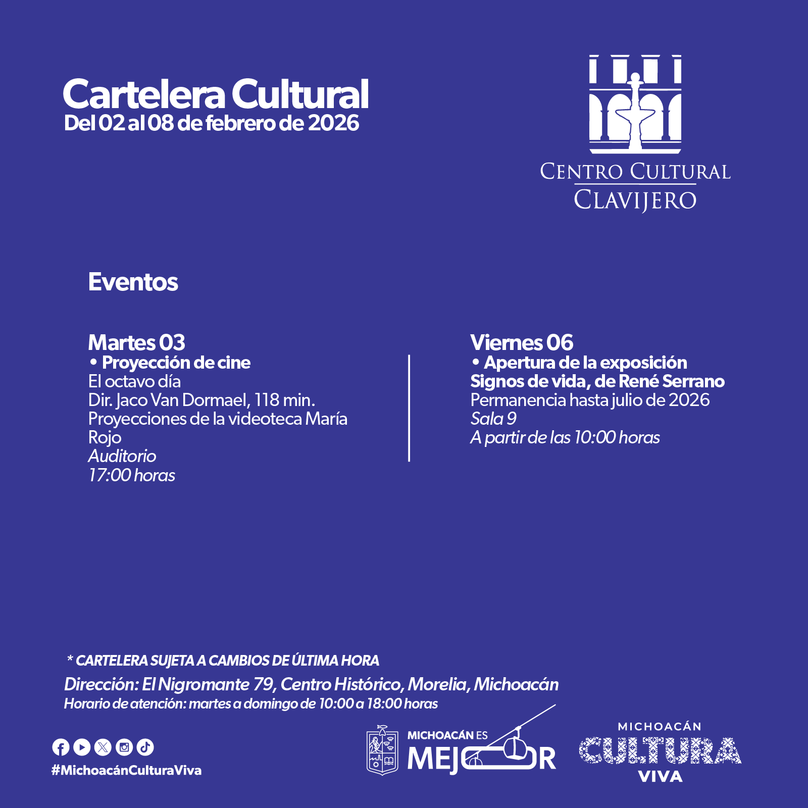 Cartelera Cultural del 02 al 08 de febrero de 2026