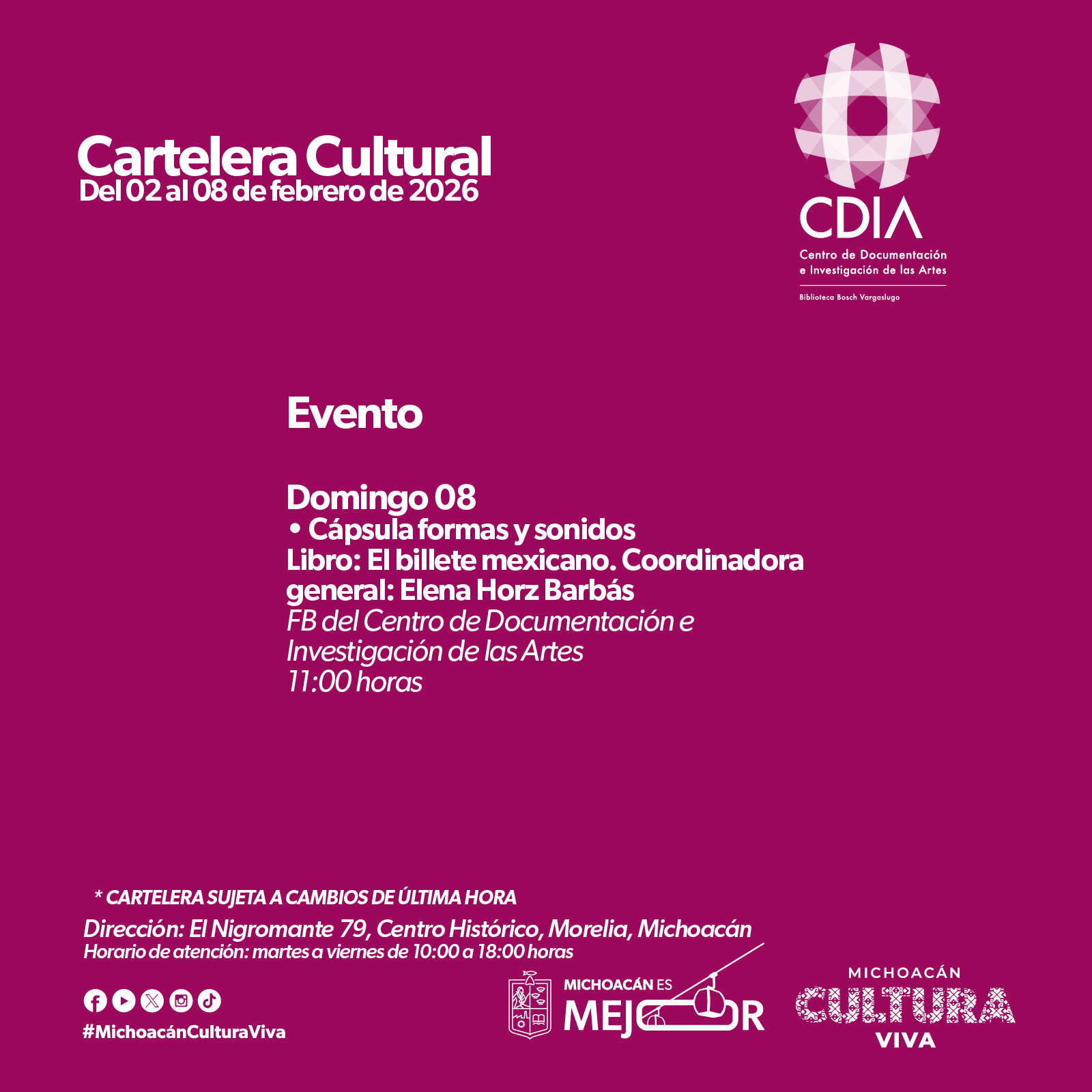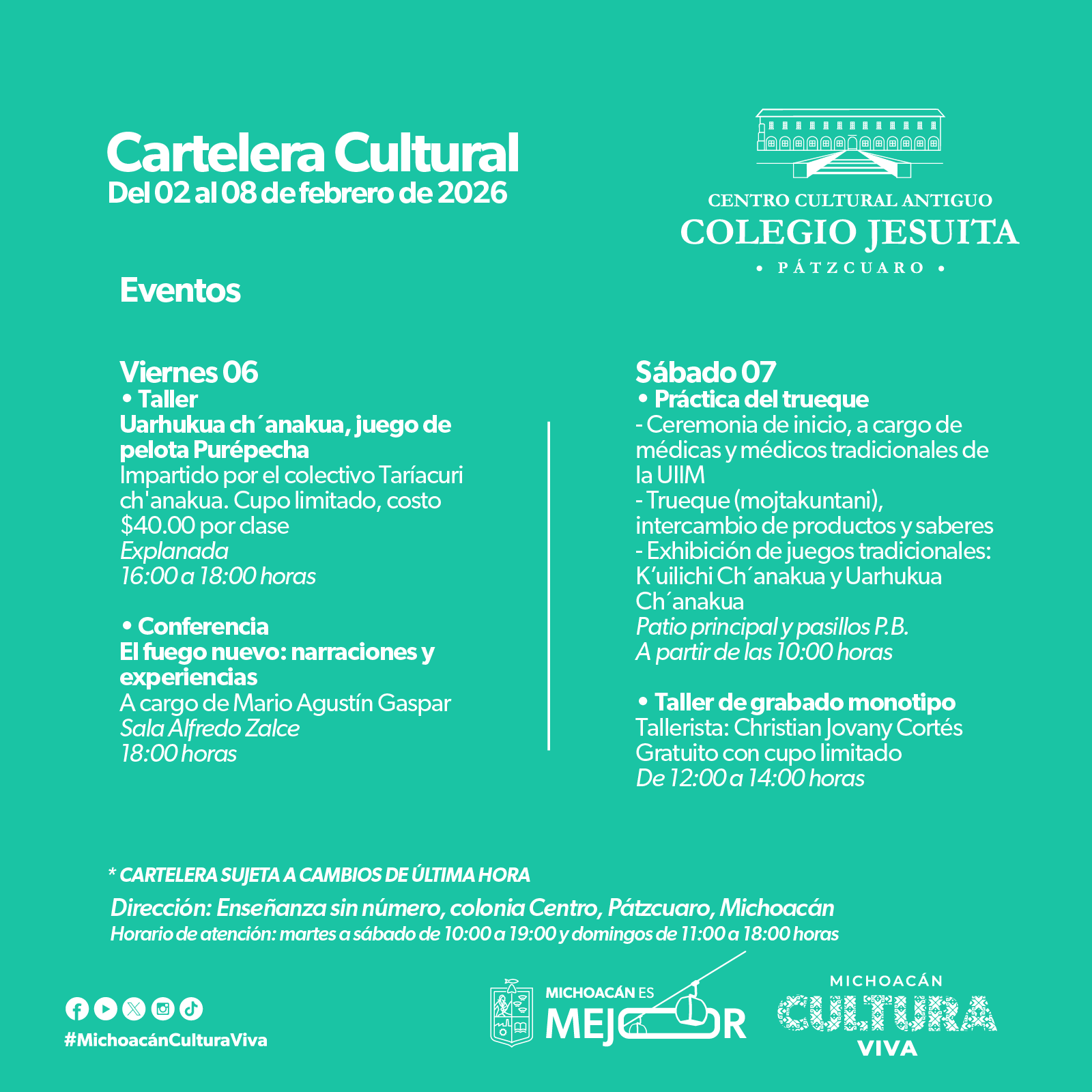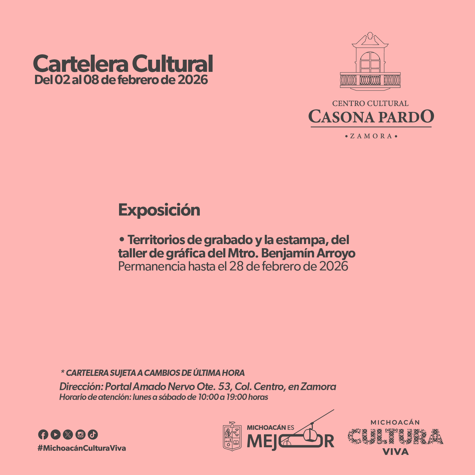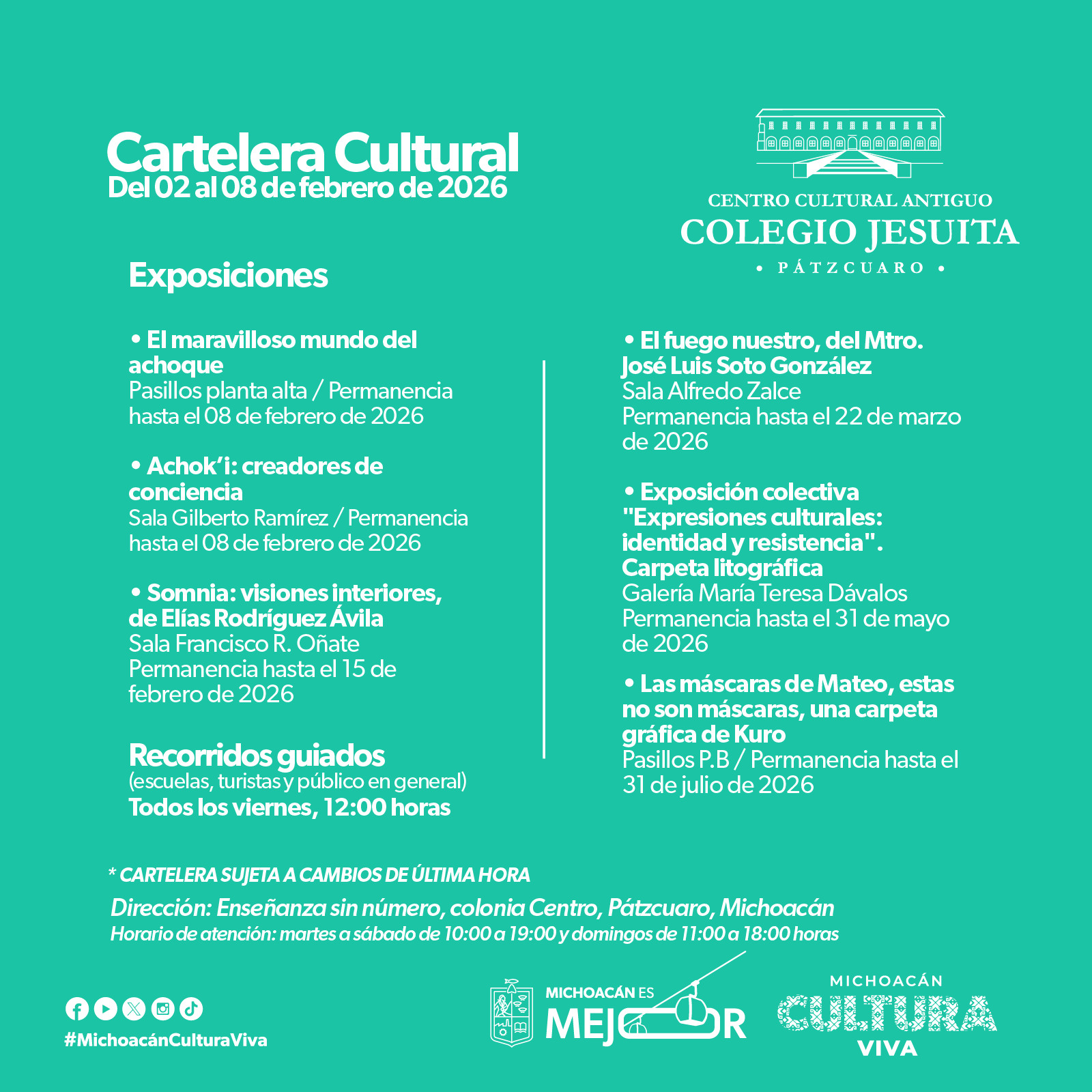 Cartelera Cultural del 02 al 08 de febrero de 2026