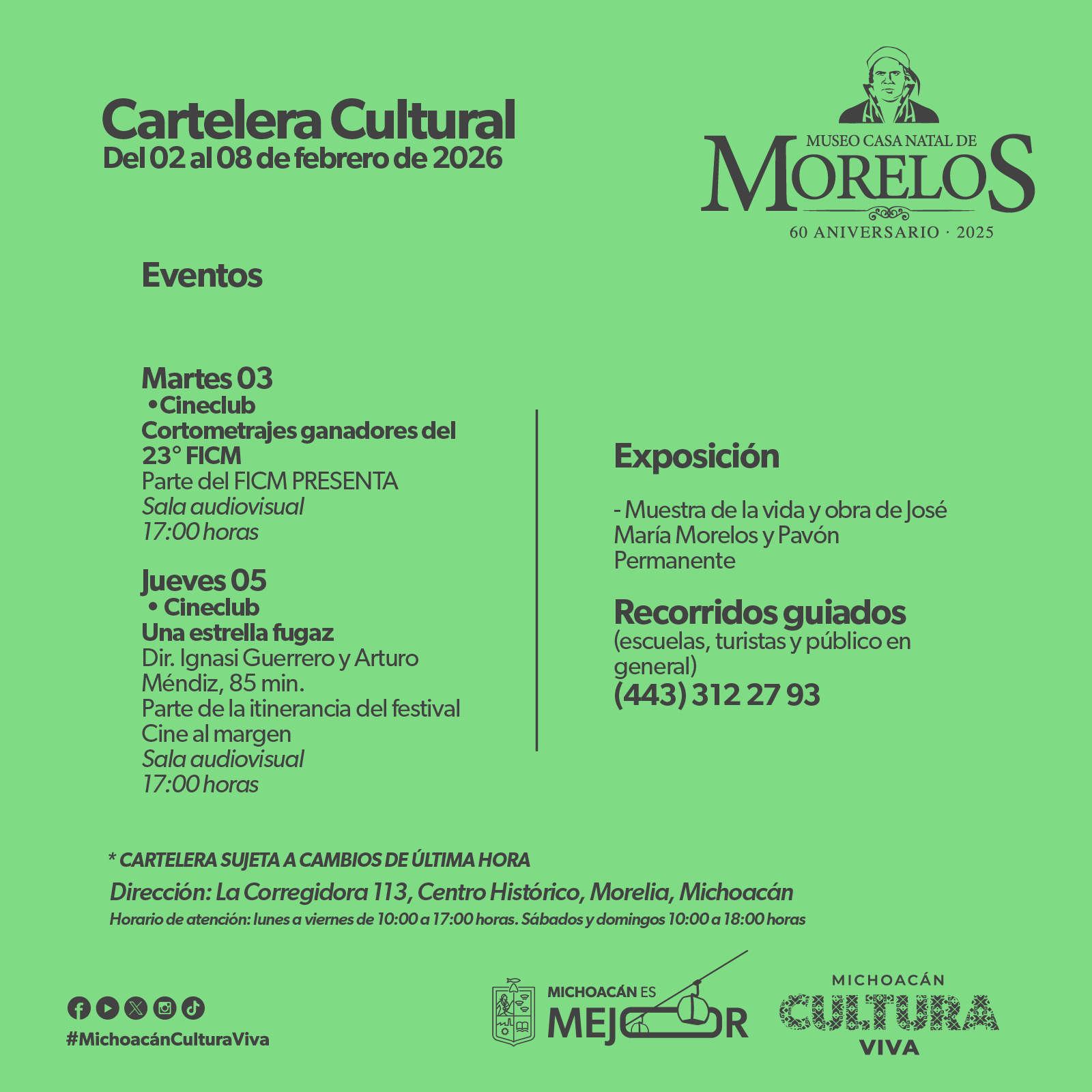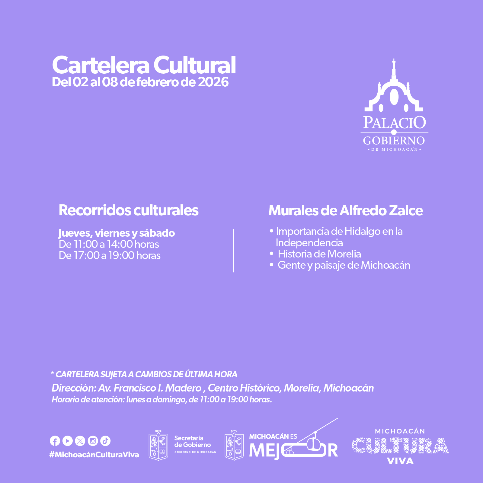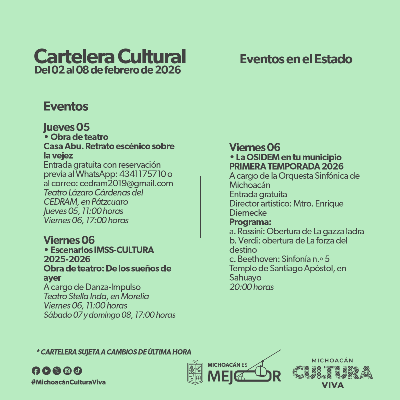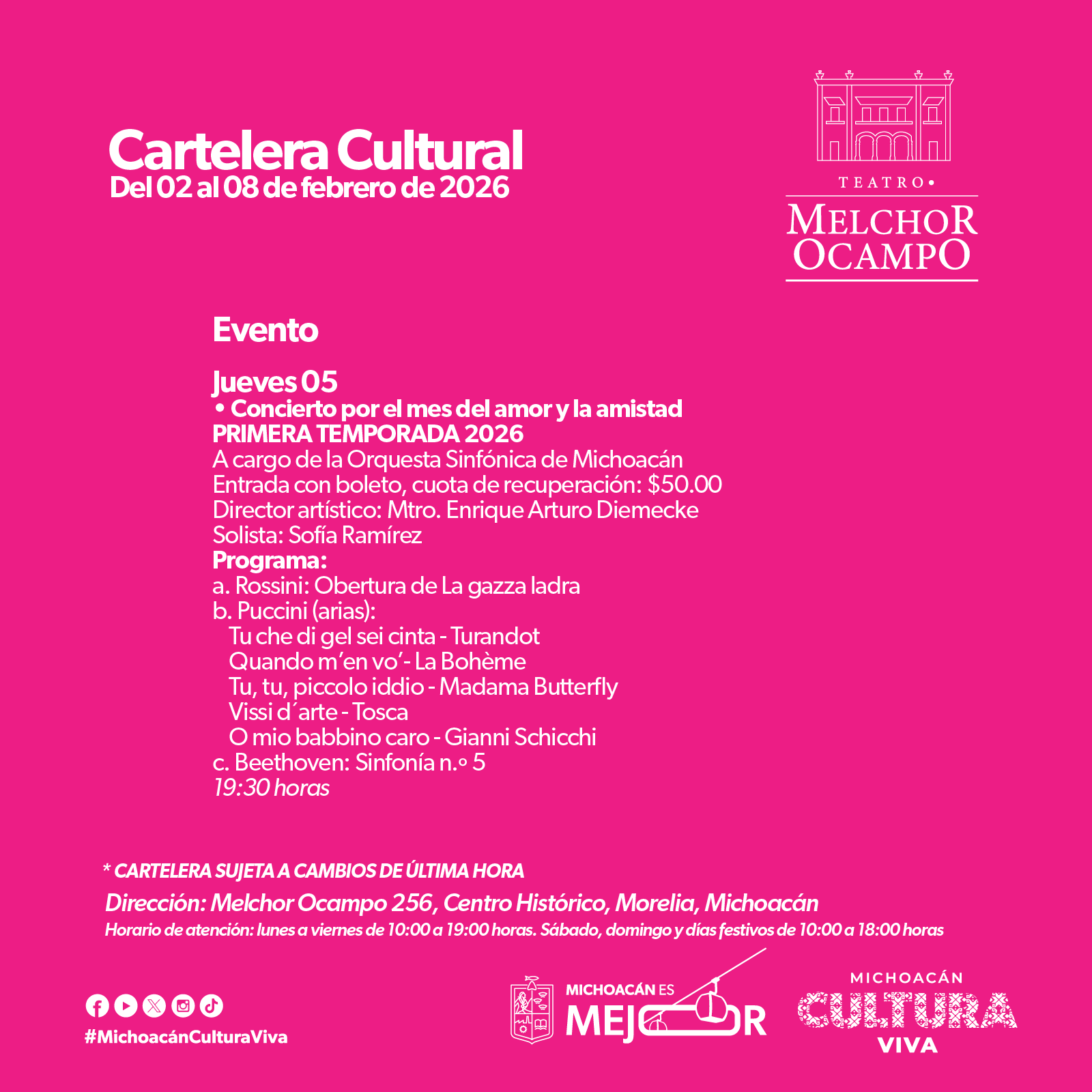 Cartelera Cultural del 02 al 08 de febrero de 2026