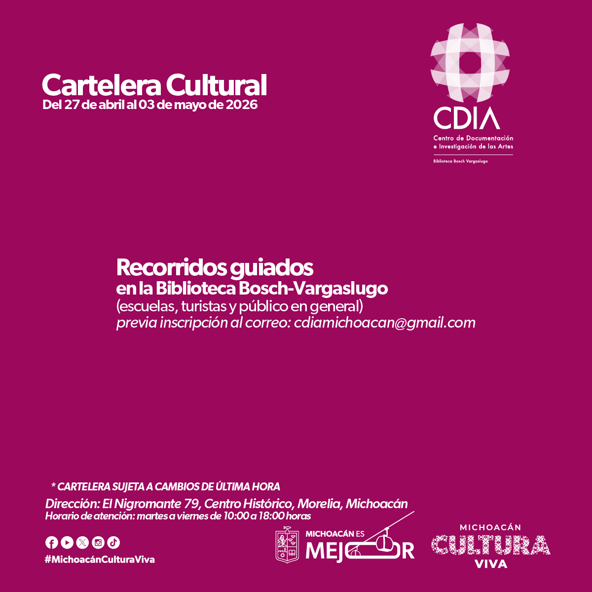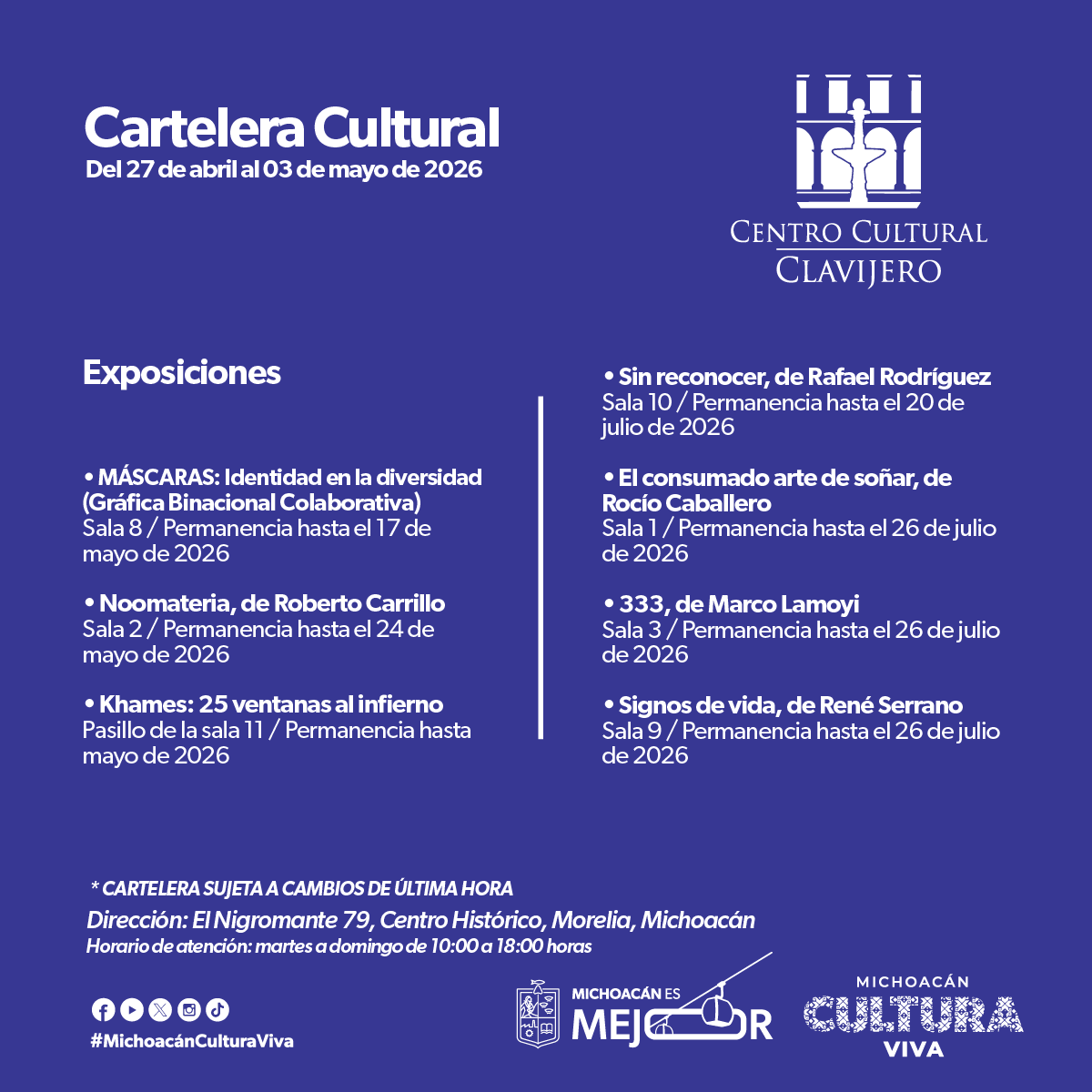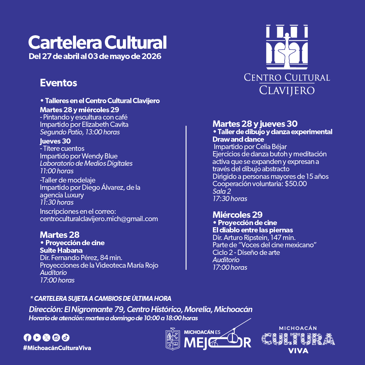 Inscripciones en el correo: centroculturalclavijero.mich@gmail.com