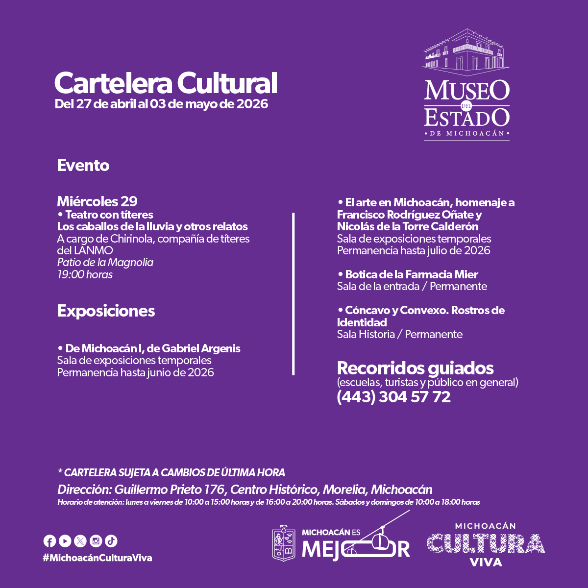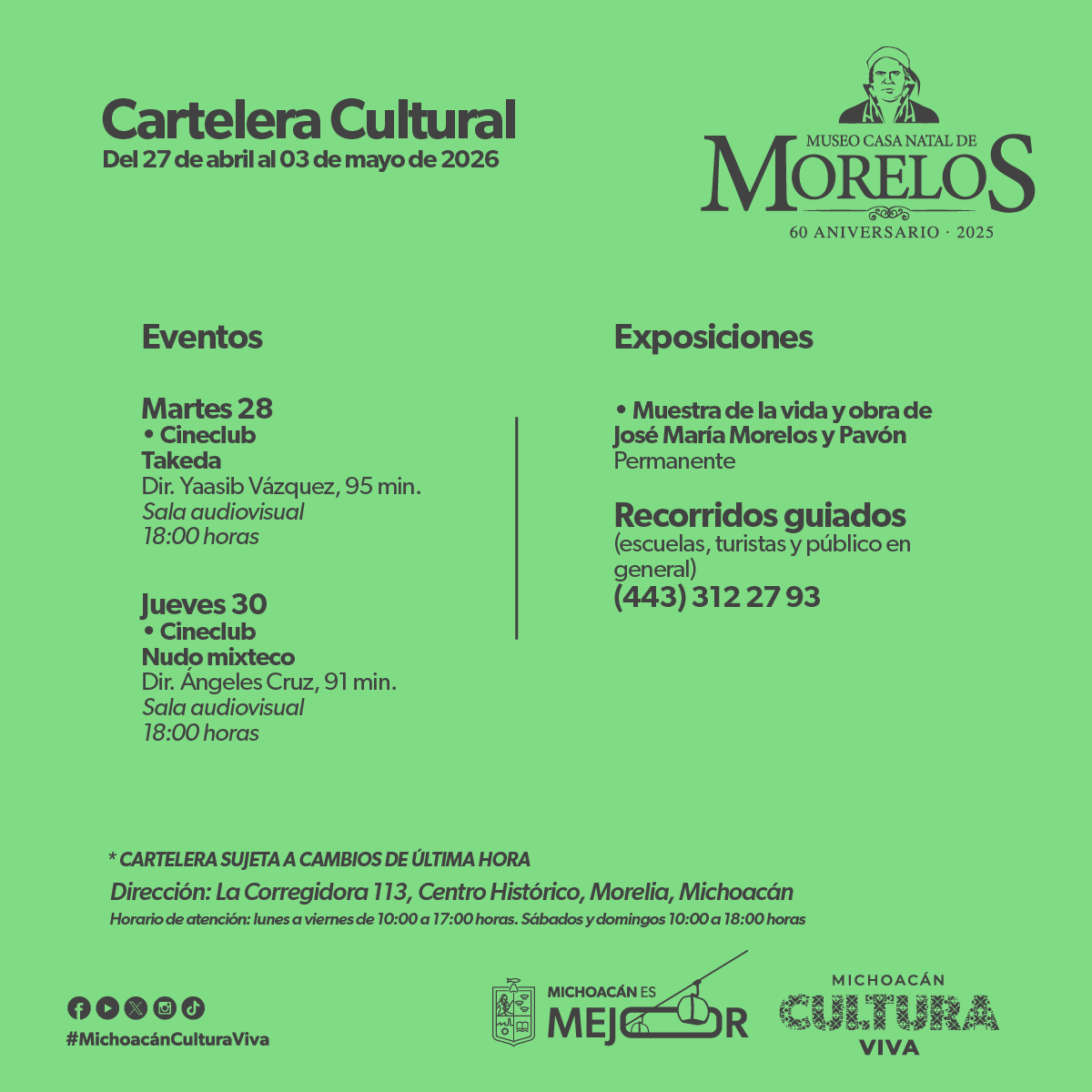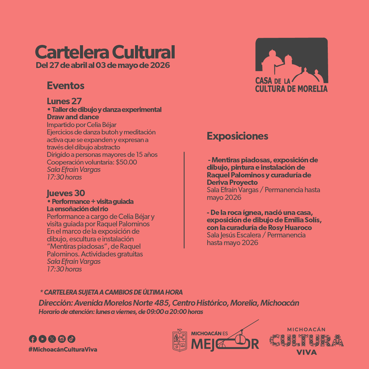 Inscripciones en el correo: centroculturalclavijero.mich@gmail.com