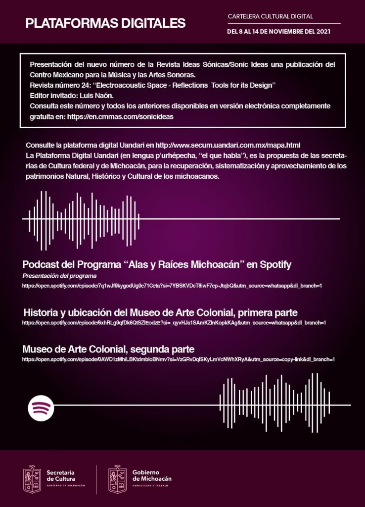 Cartelera Cultural del 8 al 14 de noviembre del 2021