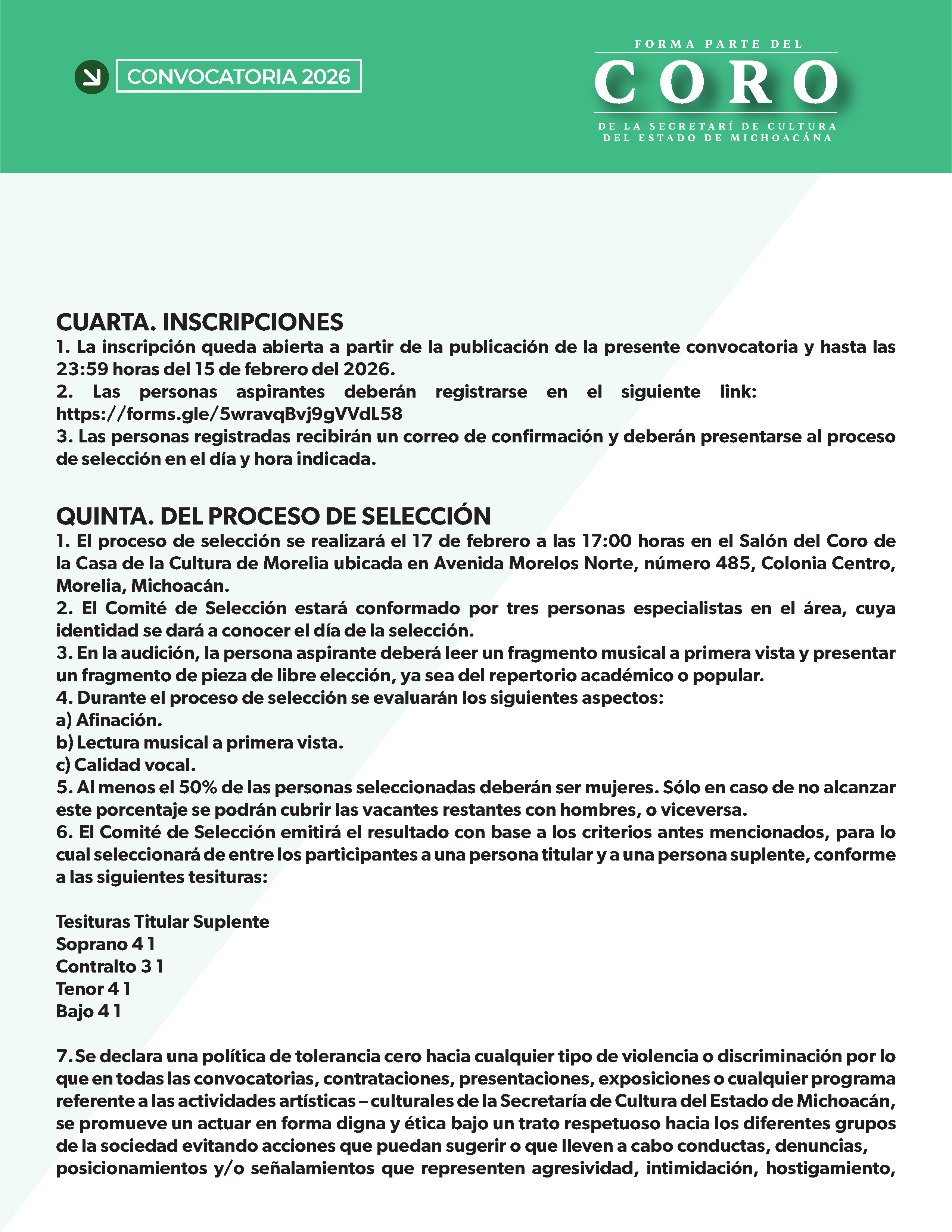 Convocatoria 2026 / Forma parte del Coro de la Secretaría de Cultura del Estado de Michoacán