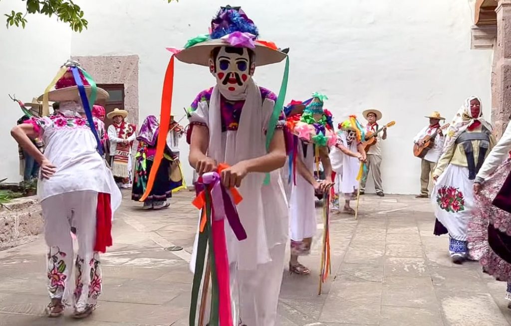 Morelia, Michoacán, 5 de marzo de 2025.- La tradicional danza de T’harés y Maringuías de Sevina, del municipio de Nahuatzen, será parte de la K’uínchekua por primera vez. Esta expresión cultural de la comunidad purépecha es una representación del crisol cultural entre indígenas, afrodescendientes y europeos.