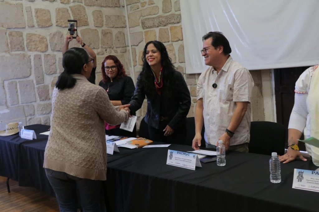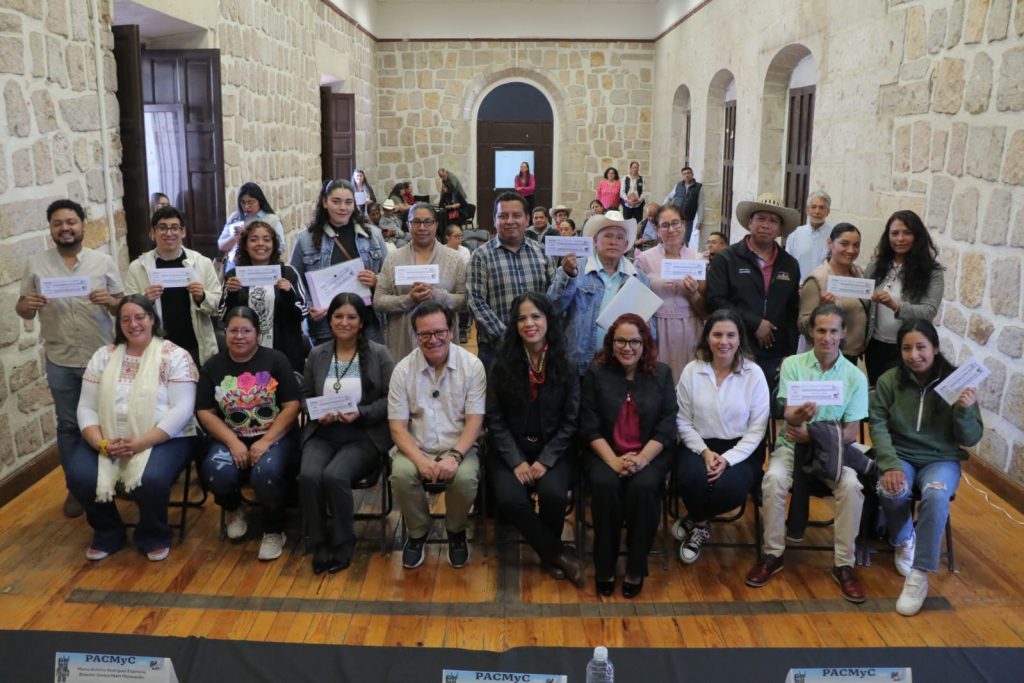 Morelia, Michoacán, 13 de noviembre de 2025.- Un millón 312 mil 818 pesos se entregaron a 14 proyectos culturales comunitarios beneficiados dentro del Programa de Apoyo a las Culturas Municipales y Comunitarias (Pacmyc) 2025, cuya convocatoria registró 65 iniciativas provenientes de distintas regiones del estado. Los apoyos permitirán impulsar propuestas de salvaguardia del patrimonio, fortalecimiento identitario, transmisión de saberes y promoción cultural en municipios de las regiones Sierra Costa, Lacustre, Oriente, Meseta y Ciénega.