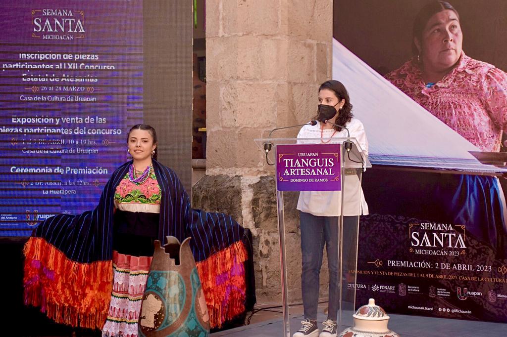 Morelia, Michoacán, 10 de marzo de 2023.- Con el objetivo de coadyuvar en la preservación, conocimiento y respeto de la diversidad cultural de los pueblos originarios de la entidad, la Secretaría de Cultura del Estado (Secum) presentó la convocatoria del XL Concurso de Indumentaria Tradicional de Michoacán, que se llevará a cabo el 2 de abril, en el marco del Tianguis Artesanal de Domingo de Ramos 2023.