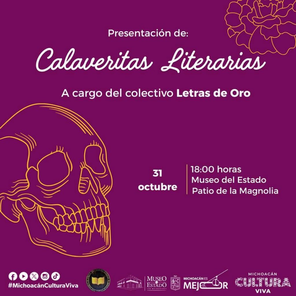 Morelia, Michoacán, 29 de octubre de 2025.- En el marco de la Semana de Celebración de Noche de Muertos, la Secretaría de Cultura de Michoacán (Secum) invita al público a disfrutar de un programa especial que combina arte, tradición y literatura en el Museo del Estado, con el propósito de compartir las expresiones vivas más representativas de la identidad michoacana.