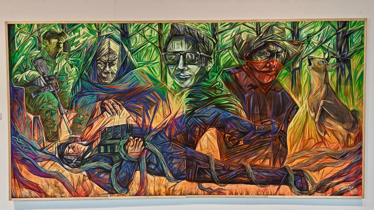Conformada por 16 pinturas y una serie fotográfica creadas entre 2020 y 2025, la exposición retrata el sentipensar de la comunidad de Cherán: sus ceremonias, la defensa del bosque, los lazos familiares y el papel fundamental de las mujeres y personas adultas mayores en la vida comunal. Cada obra propone un acercamiento íntimo a la dignidad colectiva que sostiene el proceso autónomo del pueblo purépecha.