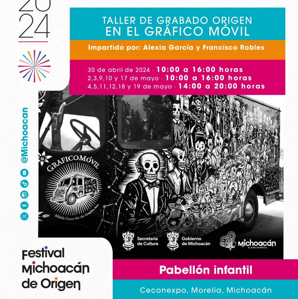 Además, las y los visitantes al Gráfico Móvil del pabellón infantil podrán conocer el proceso de impresión de matrices de pequeño formato en la técnica de Grabado en relieve y podrán experimentar la aplicación de tatuajes en linóleo, de las 10:00 a las 16:00 horas.
