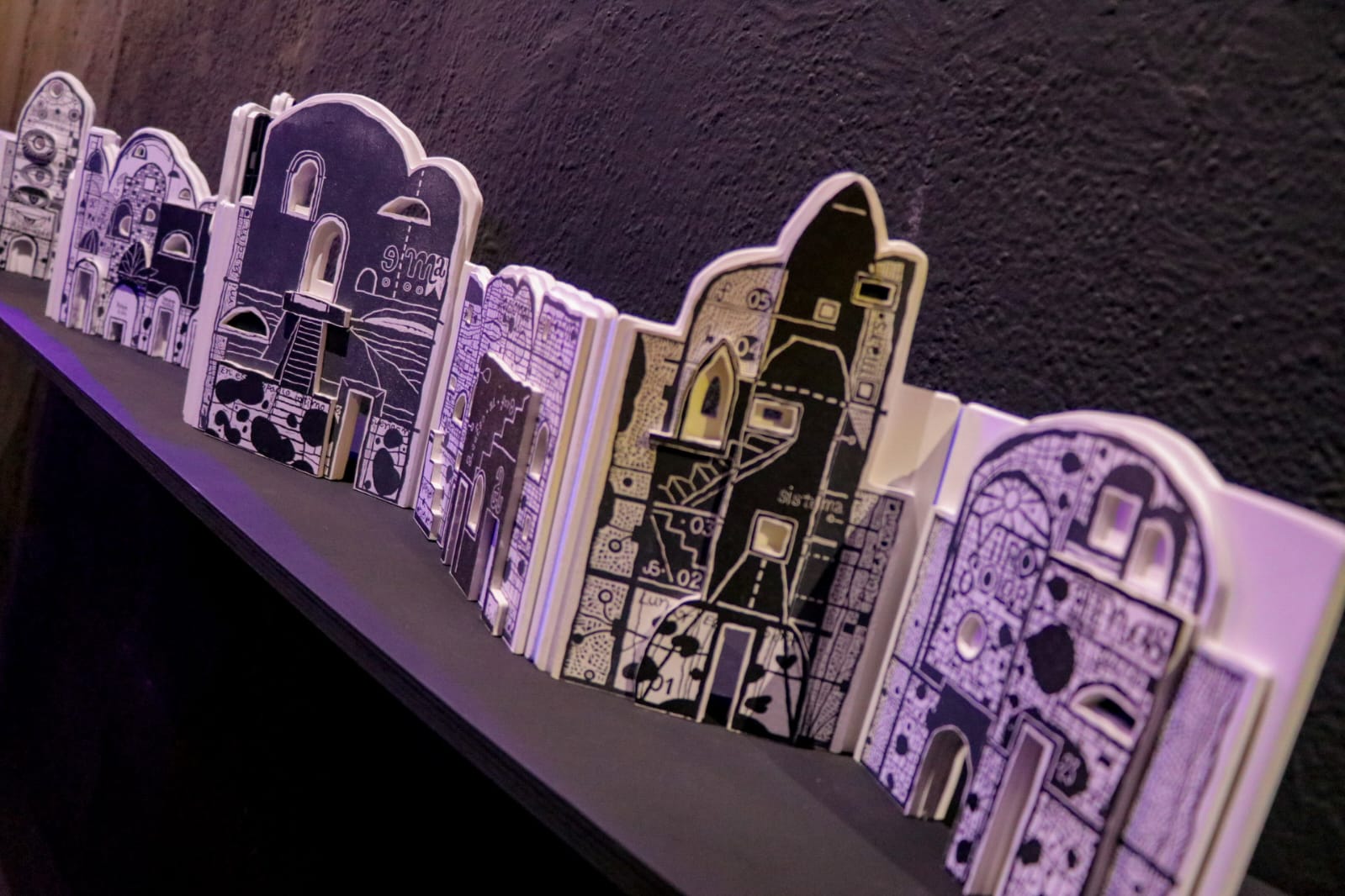 Son 16 piezas las que se presentan como maquetas, fachadas móviles y esculturas impresas en relieve. En ellas aparecen gestos, consignas y grafitis que retratan a una sociedad que resiste en espacios reducidos y entornos complejos. En conjunto, la obra aborda temas como la burbuja inmobiliaria, la degradación ambiental y la desigualdad que atraviesan a las ciudades latinoamericanas.